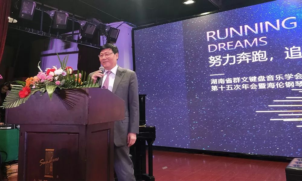 會議開始,湖南省鍵盤音樂學會會長左承德與海倫鋼琴董事長先后致辭。兩位領導分別代表鍵盤音樂學會和海倫鋼琴公司向前來參會的嘉賓與會員們致以誠摯的歡迎。