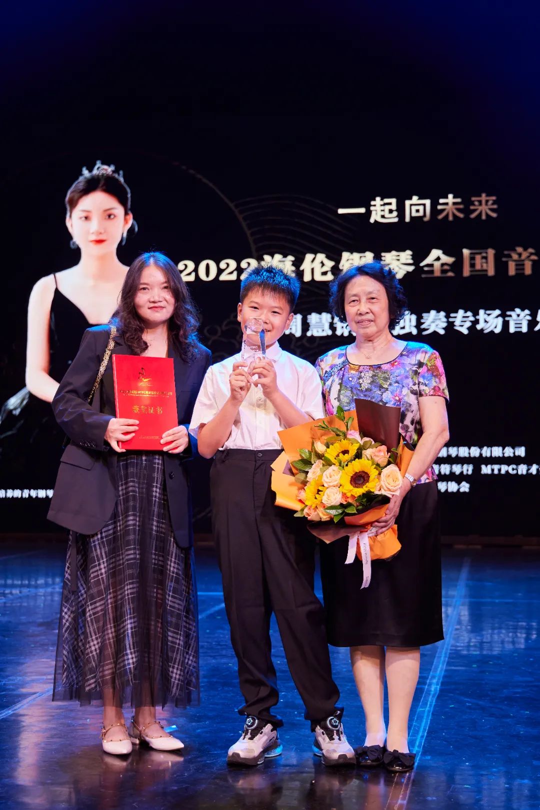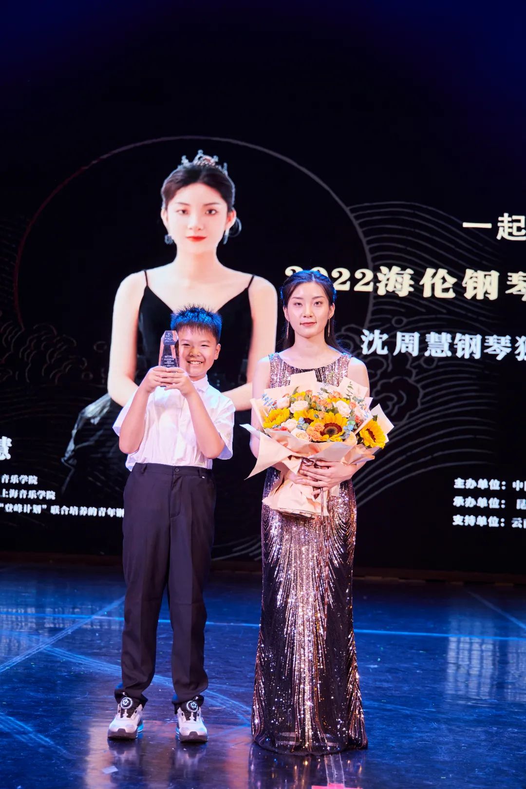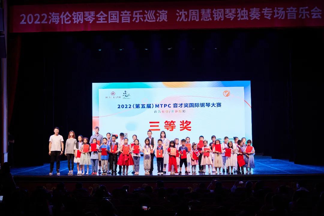 在之后的頒獎(jiǎng)典禮中,出席音樂會(huì)的領(lǐng)導(dǎo)為2022(第五屆)MTPC音才獎(jiǎng)國際鋼琴大賽昆明·賽區(qū)獲獎(jiǎng)選手們頒發(fā)證書與獎(jiǎng)杯,并合影留念。